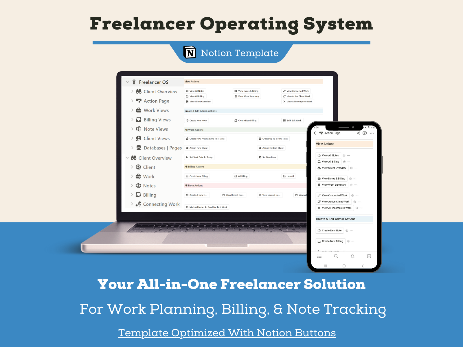 From work planning to notes & billing, this freelancer OS offers a cost-effective solution for managing, organizing, & navigating your work with Notion buttons. Watch How This Template Works 👇https://screenpal.com/watch/c01V3TVBhbO