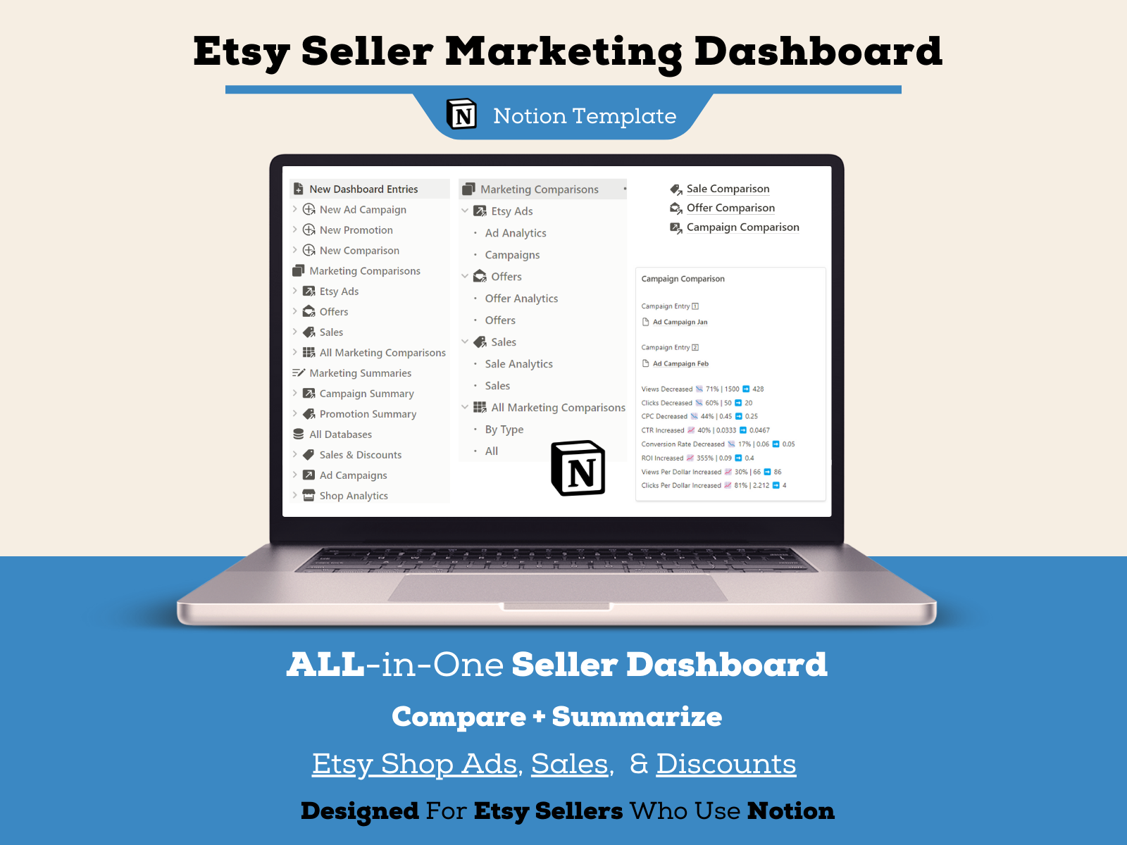 This Etsy Shop Marketing Dashboard Notion Template allows Etsy Sellers to quickly summarize and compare Etsy Ads, Sales & Discounts with proper data entry. Watch How This Template Works 👇https://screenpal.com/watch/c0eiquV4iAq